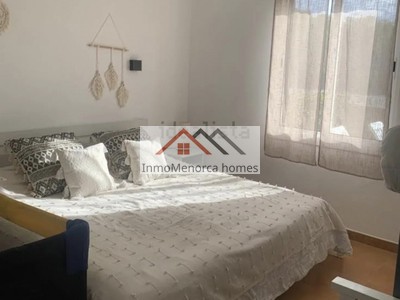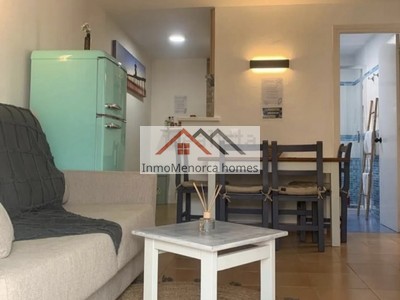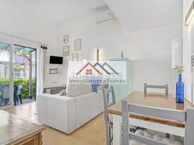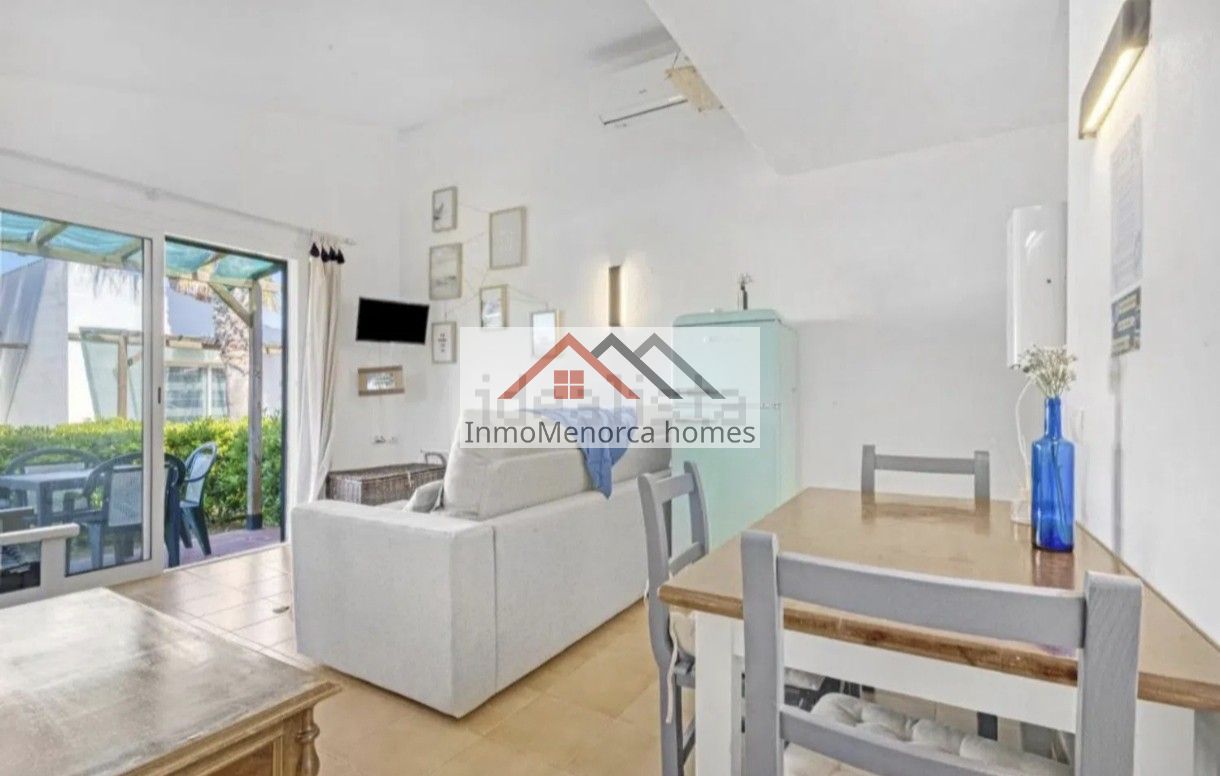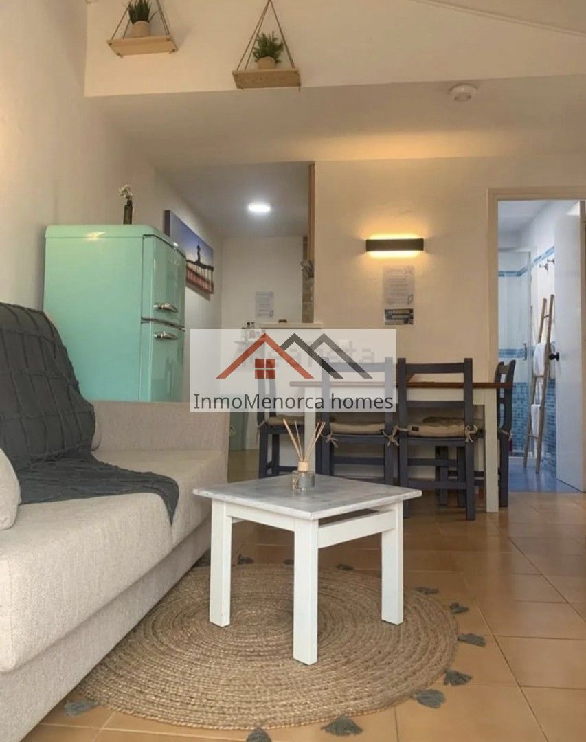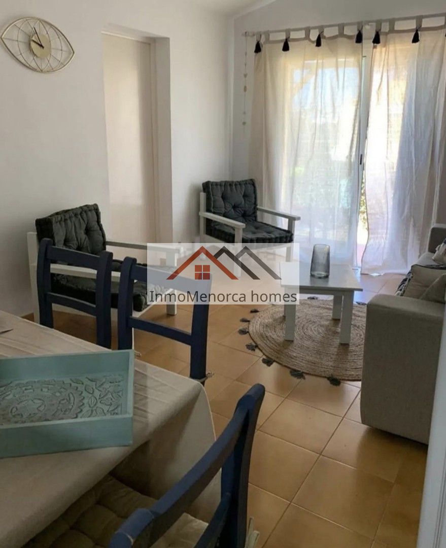 Bonito apartamento de 60m2 con licéncia turística en Ciutadella zona de Calan Bosch, dispone de salón, cocina equipada, dos habitaciones y un baño completo. Tiene una parcela de 160m2 en donde se encuentra un bonito jardín con vistas al mar y a Mallorca. Tiene una piscina comunitaria