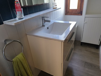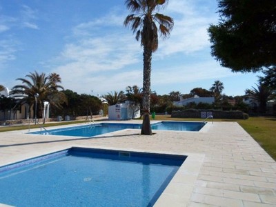 Apartamento de 65m2 en Ciudadela zona Cap Dartrutx , Calan Bosch, en parcela de 200m2, dispone de salón comedor con chimenea, cocina equipada y reformada, dos habitaciones dobles con armarios empotrados, baño completo, lavadora, tendedero, aparcamiento exterior, se vende amueblado y equipado. Tiene zona comunitaria con piscina y jardín