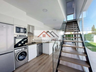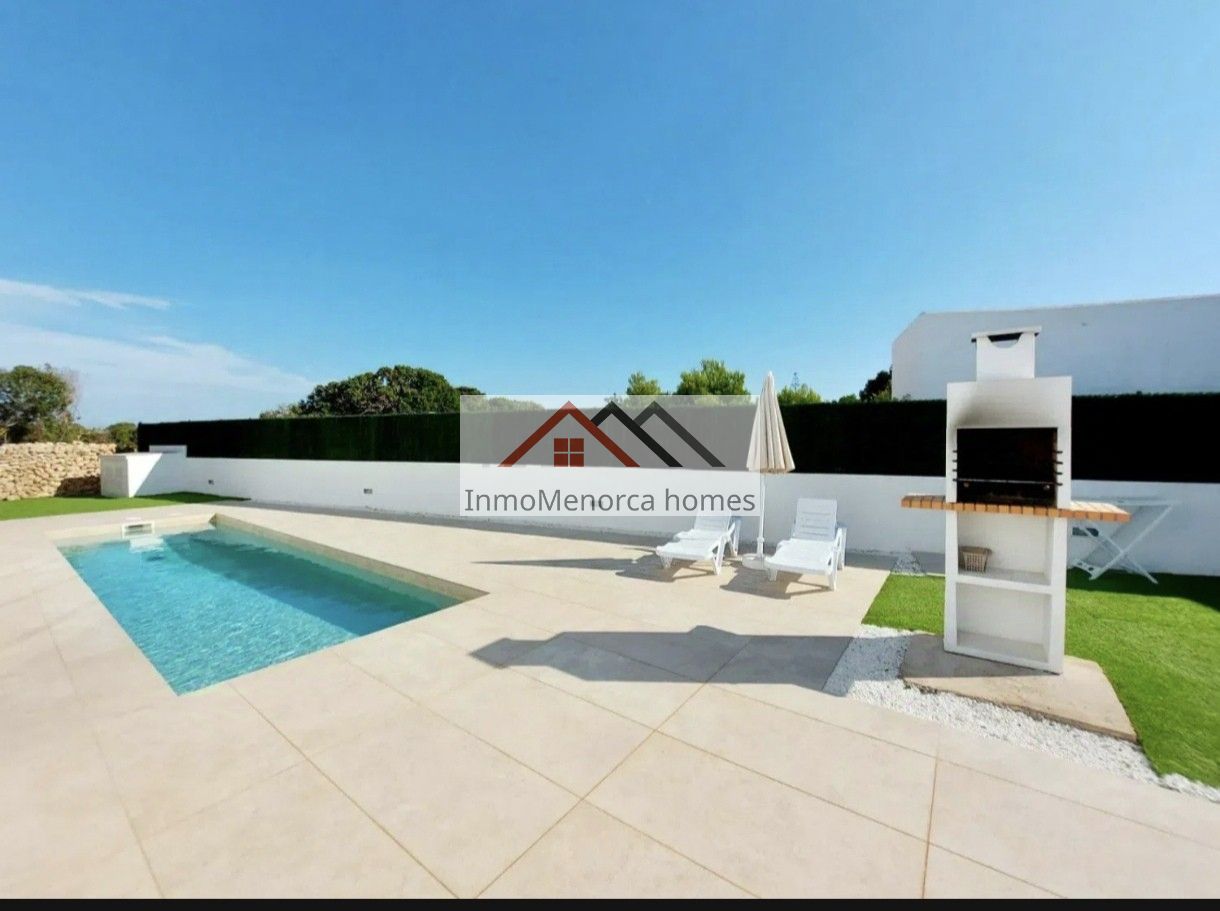Chalet de 80m2 en Ciutadella zona de Cala Blanca, construida en 2021 la vivienda tiene dos plantas, en la planta baja sala de estar, cocina una baño completo y una habitación doble, en primera planta habitación en suite y terraza, en la zona exterior dispone de piscina y barbacoa