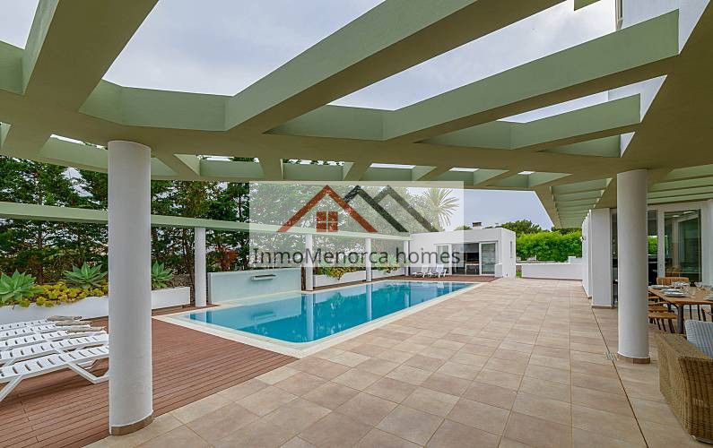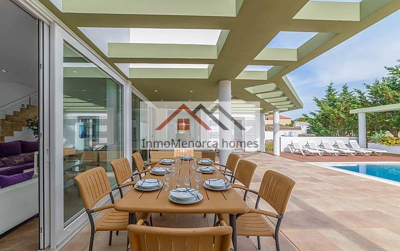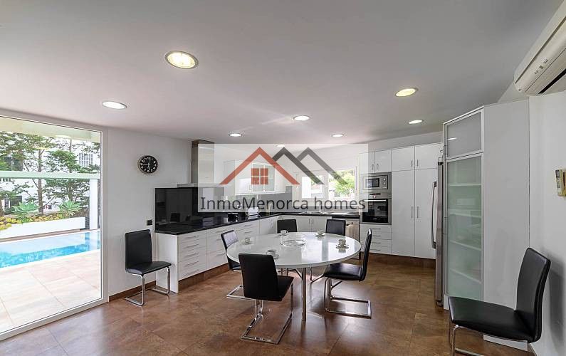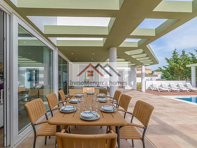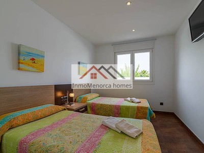 Bonito chalet con licéncia turística en Ciutadella zona Sa Caleta, con una superficie de 255m2 en dos plantas y sótano la planta baja dispone de un gran salón, cocina independiente equipada, tres habitaciones y tres baños, dos de ellos en suite, también tiene una terraza, una gran piscina con un bonito jardín y barbacoa. En primera planta se encuentra la habitación principal en suite con una terraza