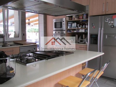 Gran chalet de 390m² construidos en solar de 800m² en Ciudadela zona Santandria,. Consta de tres dormitorios, dos baños (uno en suite), salón/comedor, biblioteca y cocina. En planta semi-sótano tiene un dormitorio, baño, salón y cocina. Gran lavadero y terraza de 50m². Zona de barbacoa. En el exterior tiene gimnasio y trastero. Calefacción suelo radiante. Aire acondicionado. Piscina privada de agua salada.